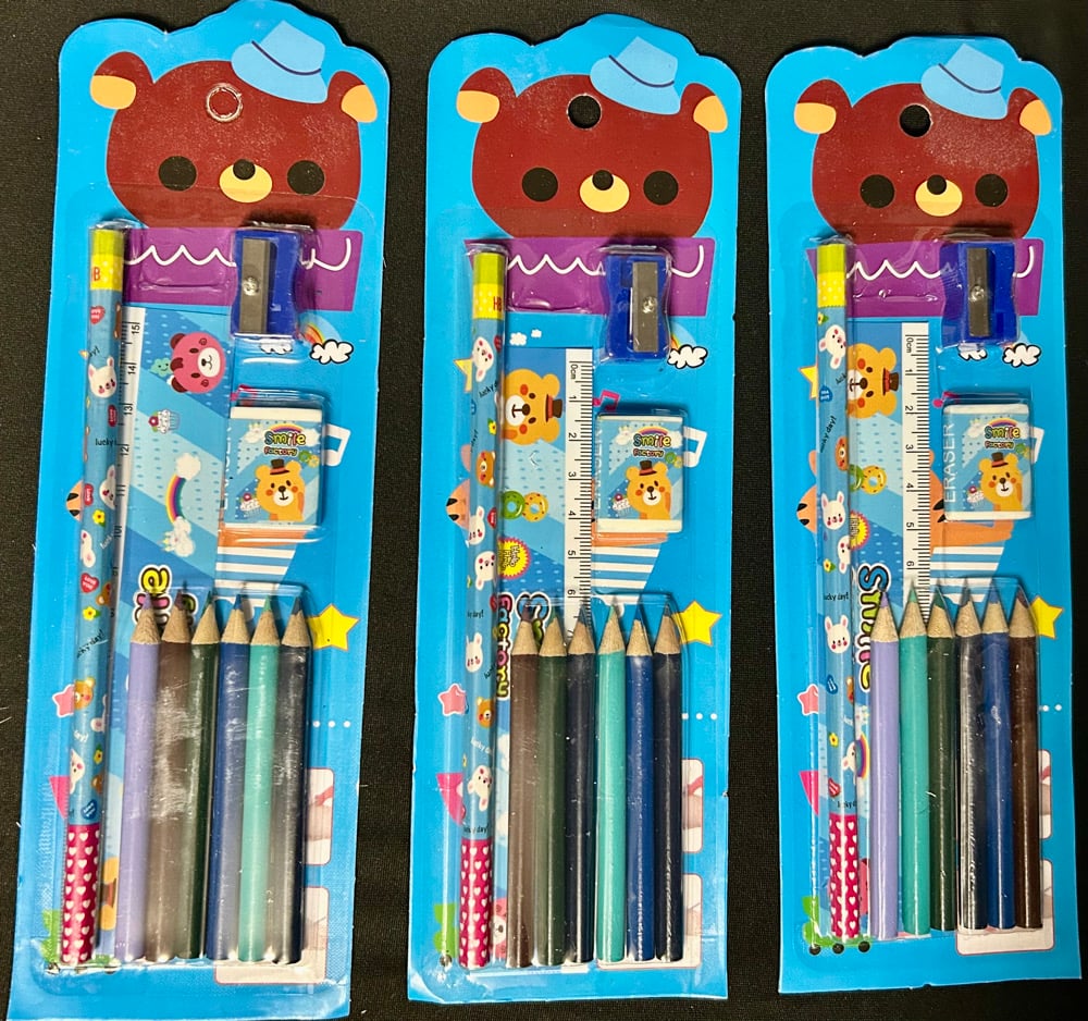 “This fun stationery kit comes with a pencil, map colors, eraser, ruler and a sharpener — everything kids need for school, homework, or creative play!”